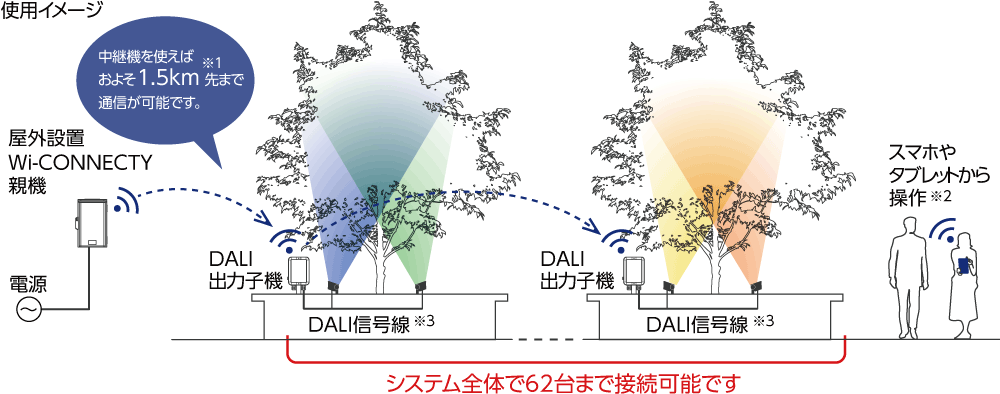 - ※3 子機から器具までのDALIの配線長は最大250mです。