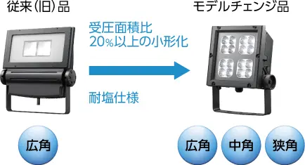 常時、飛来塩分があり、気象条件により高濃度になることのある地域に求められる耐塩仕様のLED投光器です。