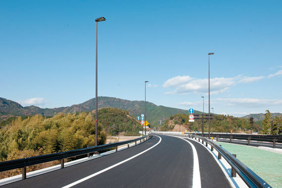 バイパス機能を持つ自動車専用道路として整備された新しい道路を安全・快適に照らすLEDの光 -