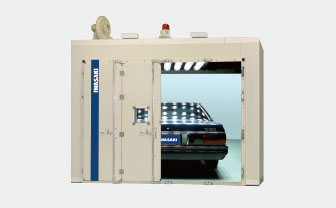乗用車1台が入る大型光照射チャンバー。耐熱試験、VOC測定など多用途でご利用いただけます。コンポーネンツサイズにも適応しています。