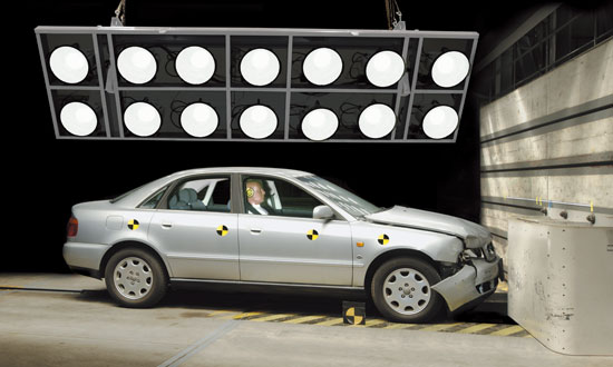 高速に動く車を撮影するための高度な照明環境の提供や、素材の劣化を短時間で再現する耐候性試験機など、さまざまな環境をシミュレートして研究開発に貢献しています。