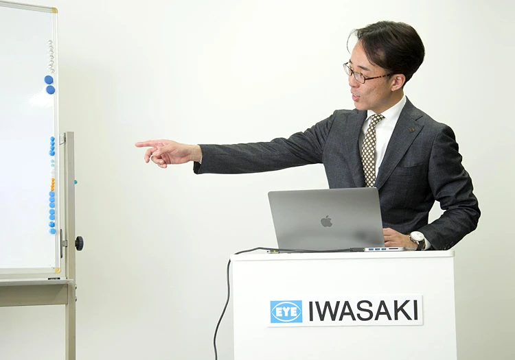 営業だった頃は、毎期ごとの売り上げ目標を達成することが職務でしたが、現部署では、もっと長いスパンでの思考が求められます。例えば、3~5年先の岩崎電気はどんなコトをお客さまに提案すべきなのか?そして、そのためには今何をやるべきなのか?岩崎電気の進むべき方向性を考える重要な部署です。当初は重責だと感じたこともありましたが、今ではそのこと自体がやりがいだと思っています。