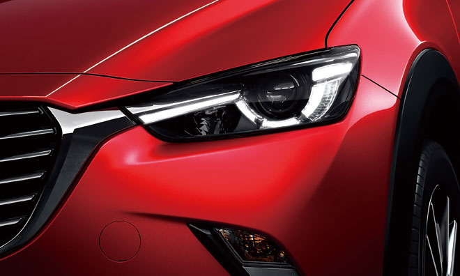 生き物の瞳をイメージしてデザインしたヘッドランプは新世代マツダの魂動デザインを個性的にアピールしています。クルマと光は密接な関係性を持つと言えそうです。