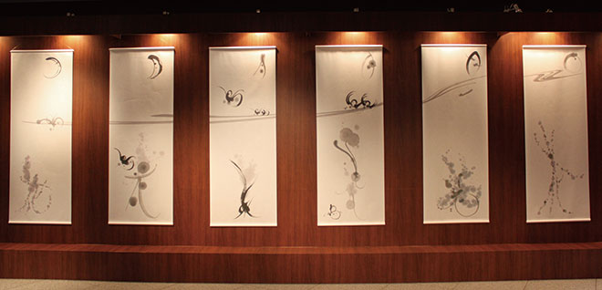 中塚さんは、空間を書でデザインする空間カリグラフィーという独自のスタイルを確立され、商業空間や旅館、ホテルなど多種多様な空間のアートワーク、またプロダクトデザインなどを手掛けていらっしゃると伺っています。書家として、空間カリグラフィーデザイナーとして、大切にされていることは何ですか。