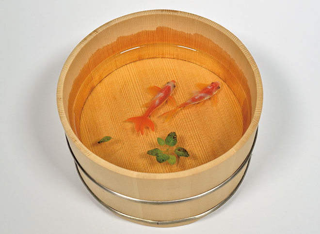今回は、透明樹脂とアクリル絵具を駆使した独自の斬新な手法で、まるで生きているとしか思えない金魚の作品を数多く発表され、国内はもとより海外からも高い評価を受けていらっしゃる金魚絵師・美術作家の深堀隆介さんをご紹介します。テレビやラジオ、雑誌など様々なメディアで取り上げられることも多く、木曽桧枡の中に金魚が泳ぐ本物と見紛うばかりの作品をご覧になったことがある方もいらっしゃるのではないでしょうか。