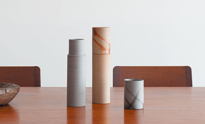 今回は、これまでに発掘した150人の匠の中から6人を選抜し、5人のクリエイターとのコラボレーション作品を制作するという企画で、私もクリエイターの一人に選んでいただき、薩摩切子職人の鮫島悦生氏とのコラボレーションによる新作グラス「grad.」を発表しました。何層にも色ガラスを重ねる技術と、厚みのあるガラスを深くカットする意匠を特徴とする薩摩切子の魅力を引き出すデザインを目指しました。新しい技法に挑戦したので、制作過程はとても大変でしたが、シンプルなかたちの中に見えるガラスのカット面の色の美しさを感じていただける、今までにない薩摩切子をつくることができたと思います。あえて酒器にこだわらず、さまざまな用途にお使いいただける「grad.」は2020年夏に商品化を予定しています。
