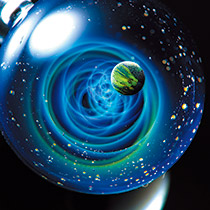 光の入り方でさまざまな表情を見せる小さなガラスの中で輝きを放つ宇宙を感じていただけると嬉しいです。