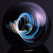 「宇宙ガラス」を写真に撮る時に、ガラスという素材は映り込みがあるので難しいということを念頭に置いて、もっと手軽に撮影できないかと考え、演色性の高い特注ライトをつくるなど、照明にはかなりのこだわりを持っています。展示会でのショーケースも、作品を多灯のLEDではなく1灯で照らして映り込みを抑え、ガラスの中が綺麗に見えるように照明器具を持参するなど、作品の魅力をより効果的に伝えられる光環境づくりに努めています。