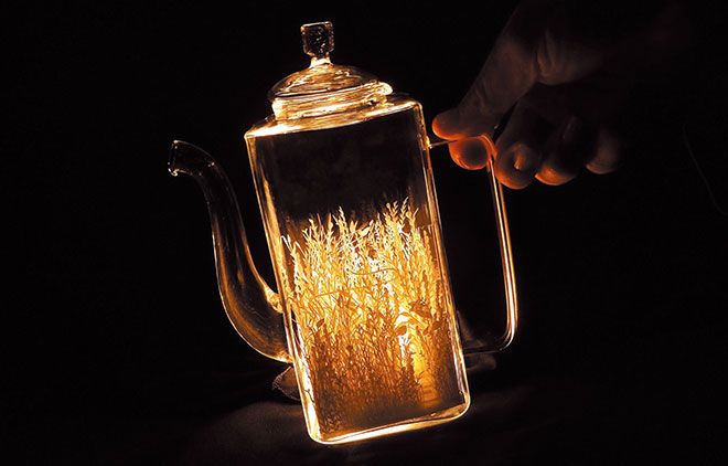 光の陰翳を表現することで、自然と共存する世界を作品の中につくりだしています。