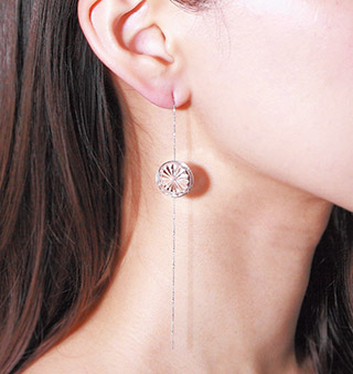 「SENA MISAWA」では、昼間も使っていただけるよう、お酒だけでなくジュースなどにも使いやすいグラスを作り、私も毎日のように使っています。堀口切子のピアスのデザインを任された時は、ピアスのガラス部分に光が透過して輝くように、金属部分を工夫してデザインしました。光の反射で輝きを増す江戸切子は、ガラスの内側とそこに注がれた飲み物が反射し合って万華鏡のように変化したり、照明が当たることでカウンターやテーブルに複雑な陰影をつくったりと、使うことで知ることのできる切子の魅力がありますので、ぜひ実際に手に取っていただきたいと思います。