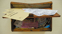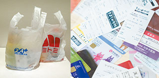 右、クレジットカード、ショップのポイントカードなどをリアルに再現した中村市内の落とし物