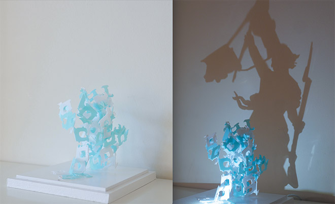 身近な素材から生まれたオブジェに光を当てると浮かび上がる影アートを多くの方に楽しんでいただきたいです。