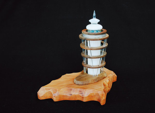 約2000度の炎を出す酸素バーナーを使い、ガラスを成形していく酸素バーナーワークは、ガラスの成形技法の一つで、ビーカーやフラスコなどの理化学容器や耐熱ガラス食器の素材として知られるボロシリケイトガラス(耐熱ガラス)を使用します。棒状や筒状など形やサイズも豊富で、透明度が高くて丈夫なため工芸の素材に適しており、作品の可能性も広がることが利点だと考えています。また、吹きガラス、ステンドガラス、ガラス研磨などを行っていた経験をいかし、複数の技法を合わせた作品もつくっています。そして、ガラスの持つ輝きや景色を映す美しさを大切にしながら、作品一つひとつに物語を込めて制作しています。