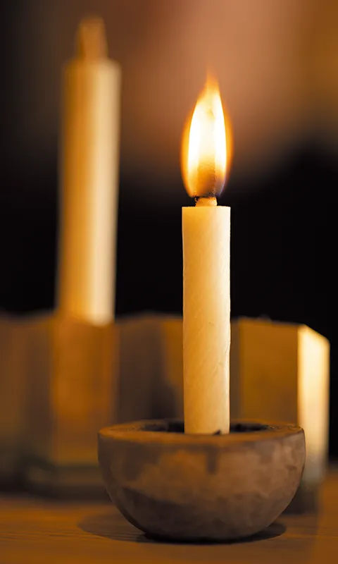 和蝋燭は、中が空洞芯になっているため空気が流れやすく、風がない時でもゆれたり、炎がパチパチと弾んだりするような現象が起こります。この炎のゆらめきには、小川のせせらぎや波の音のように心と体にリラックス効果をもたらすとされる「1/f(エフブンノイチ)のゆらぎ」があり、心地よく心を落ち着かせる光の癒し効果があるといわれています。