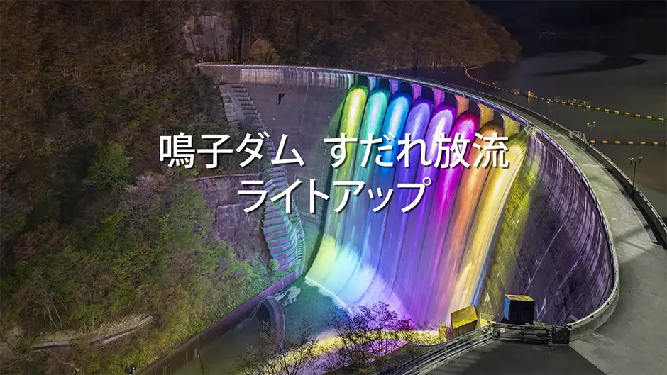 [Video]鳴子ダム すだれ放流ライトアップ