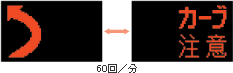 矢印と「カーブ注意」間で交互に点灯させる(赤色、早く点灯)。![]() |