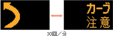 矢印と「カーブ注意」間で交互に点灯させる(橙色、遅く点灯)。![]() |