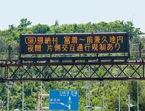 岩崎電気の道路情報表示板は、各種道路情報をドライバーに素早く伝えます。
