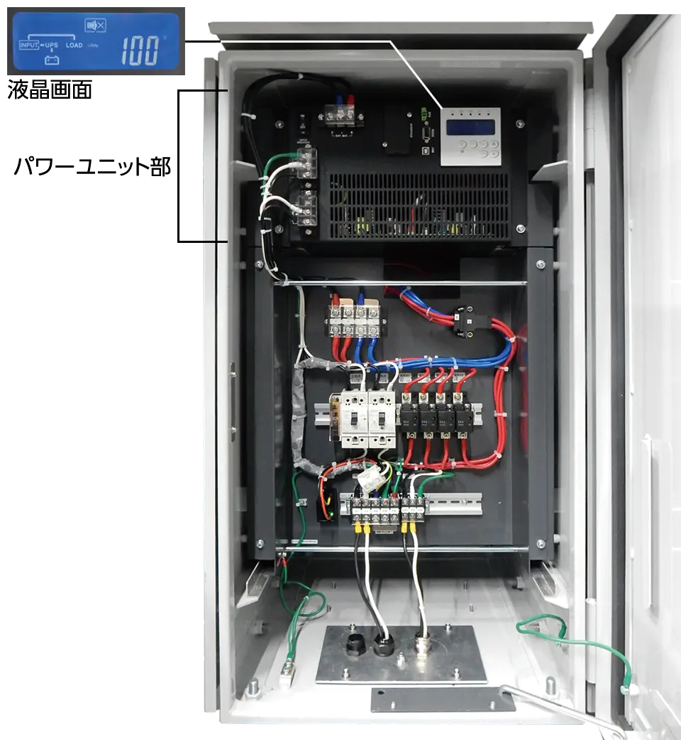 | 標準オプション | IP監視接続機能(SNMPを使ったUPS監視機能)、塗装色指定、重耐塩塗装指定、共架バンド、チャンネルベース、ダウントランス(一次側) | ||||
