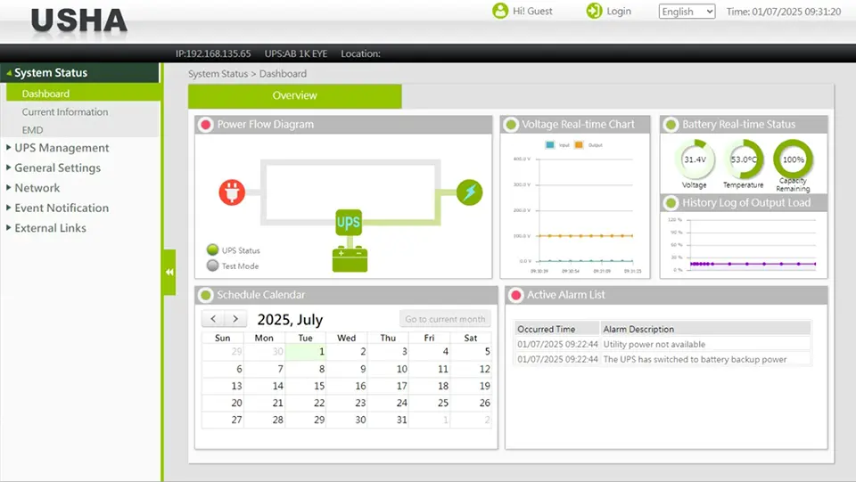 UPS内のウェブサーバにアクセスすることで、PCブラウザ画面で現在の状況が確認できます。