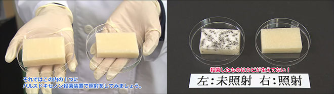 このパルスドキセノン装置を使い、今度はカビ菌のついた餅2つで実験してみます。