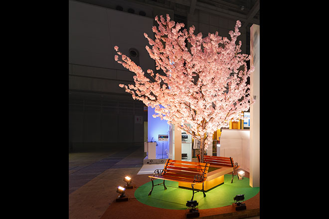先週行われたライティングフェアでも、この桜の美しさを体感いただこうと、最新型の「美vid」レディオック フラッド ネオで、ライトアップした桜を展示いたしました。