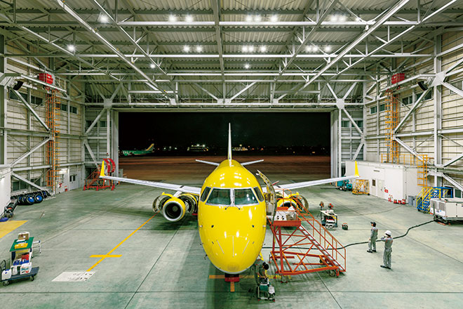省エネに貢献するLEDの光で格納庫を明るく照らし、安全で快適な作業環境を実現しています。