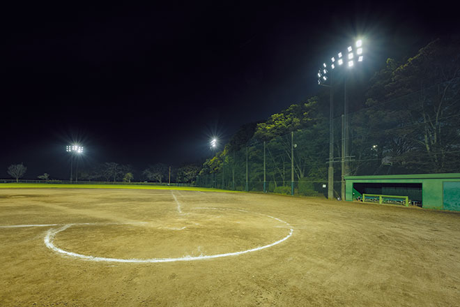 硬式野球のJIS照明基準における運動競技区分Ⅲの照明要件(内野500ℓx、外野300ℓx)を満たし、明るく均斉度の高い良好な照明環境を創出しています。