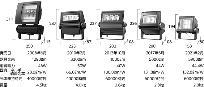 そのボディを借りて、LED投光器として最初に登場したのは2008年です。
