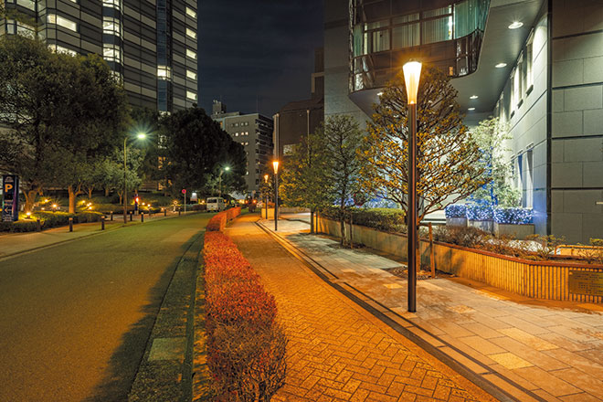 四季のイメージに合わせて、春~夏~秋~冬と色温度を変化させるとともに、人通りの多い時間帯の「賑わいを生む光」から深夜帯の「保安灯としての光」まで時間ごとに明るさを変化させる調光を設定し、環境に寄り添う心地よい光環境を創出しています。