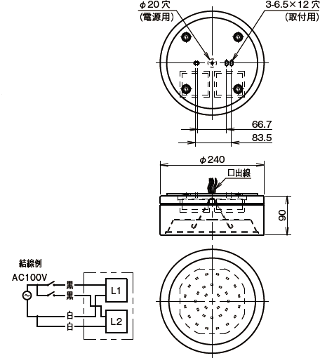 | 固有エネルギー消費効率(ℓm/W) | 全点灯92.0 外側点灯93.1 内側点灯95.4 | 全点灯73.8 外側点灯75.0 内側点灯77.2 | 106.5 | 85.5 |