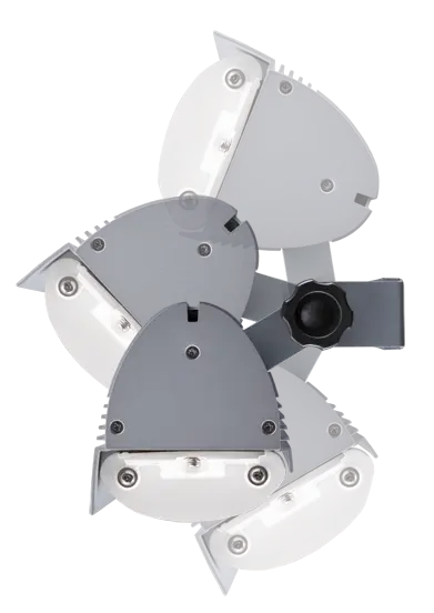 噴流形IP55のレディオック マルチラインは、軒下や屋外通路、アーケードなど屋内・屋外の天井面、壁面の雨線外にもお使いいただけるマルチなベースライトです。
