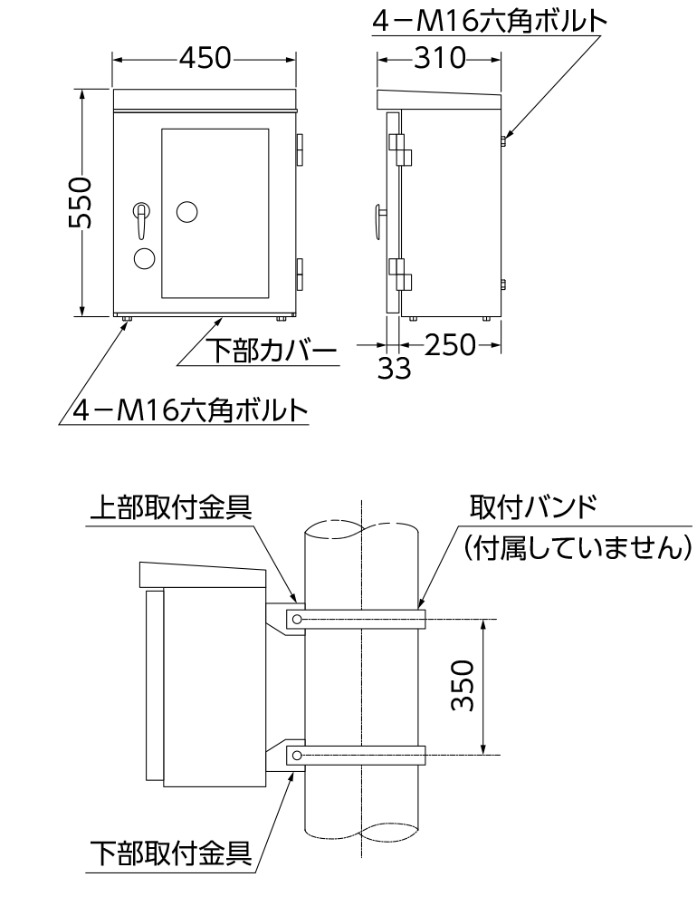 ※ポール取付時、取付バンド(別売)は2本必要です。