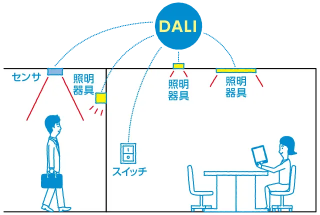 DALI制御は、照明を、より細かく、自由に制御できる汎用性の高いシステムとして、一般に活用が始まっています。