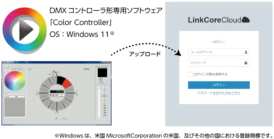 作成したデータをインターネットサーバ「LinkCore Cloud」にアップロードすることでLink-Coreに設定することができます。
