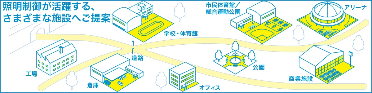 各施設の用途に応じた点灯パターン・調光などにより省エネにも貢献します。