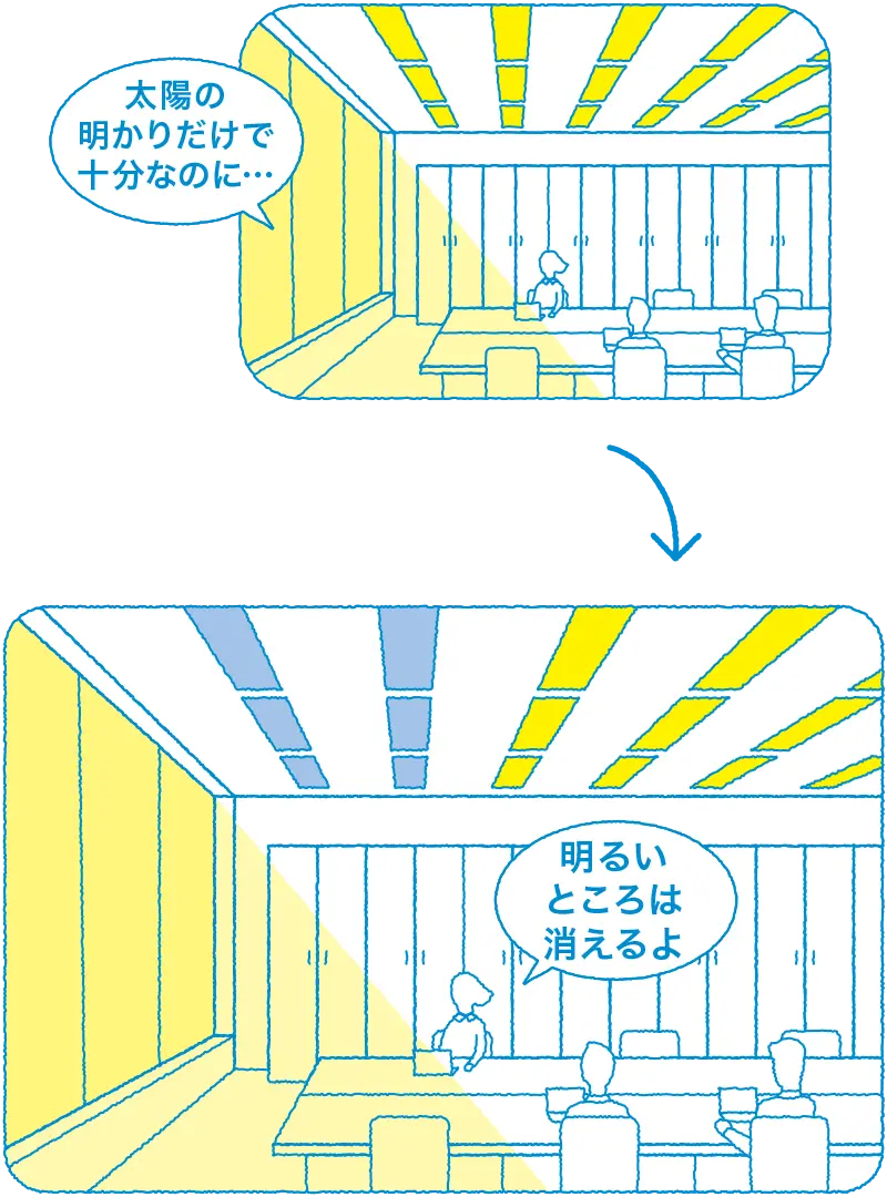 使用目的により、明るさだけではなく調光・部分点灯・まぶしさ抑制などが可能。