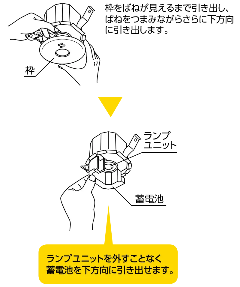 蓄電池はランプユニットを外すことなく取り出せるので、メンテナンス作業が楽になりました。