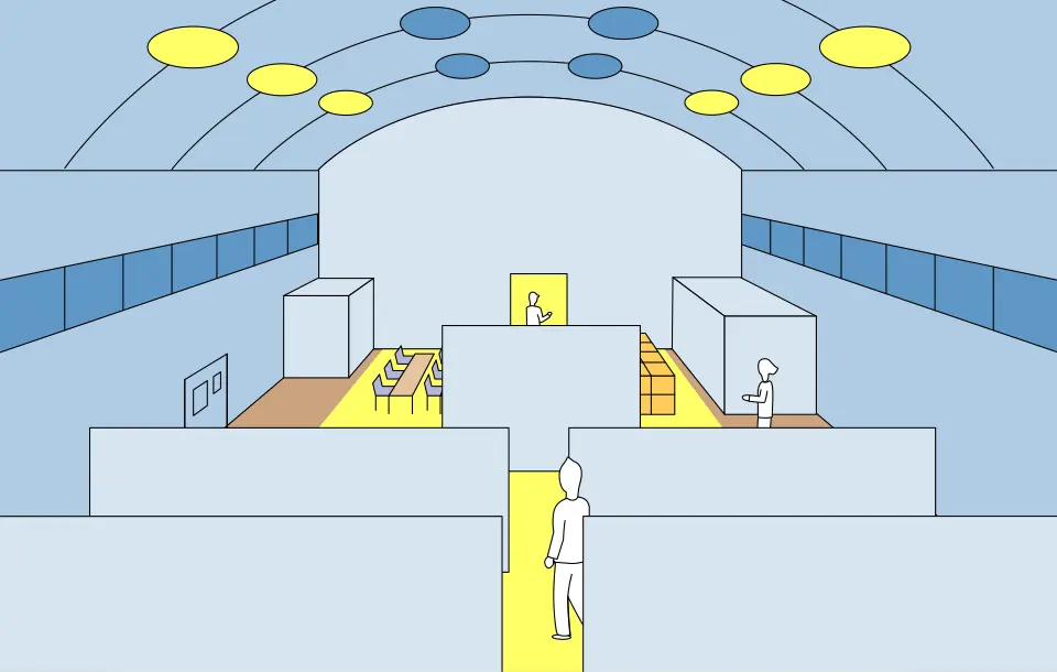 DALI対応照明器具1台ずつにアドレスを設定できるため、配線系統にとらわれない個別制御が可能です。