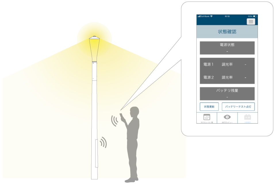 日常時だけでなく非常時(停電時)にも点灯するフェーズフリーな街路灯です。
