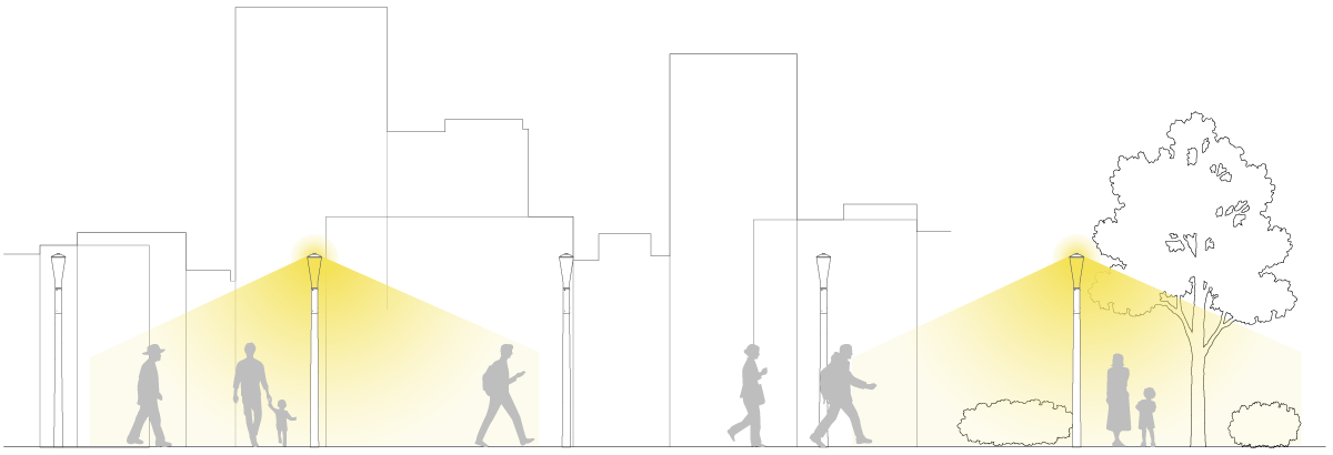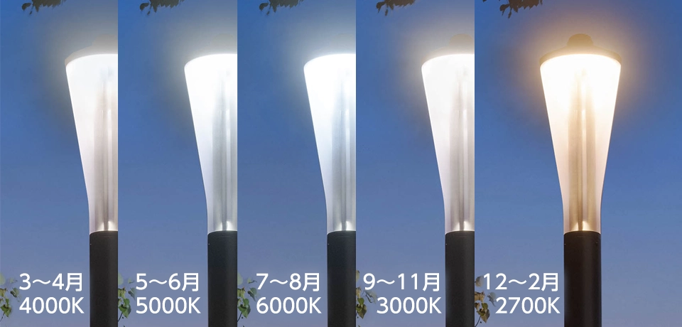プログラムにより、季節ごとに色温度を調整、人々が四季を愉しむ公園や広場を彩ります。