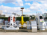 入口の前庭にある風力発電機を正面に、右手の茶色のタイル張りの建物の2Fが「あかりの館」、左手の白亜の建物が「九州エネルギー館」なんだ。