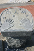 岬の付け根部分に置かれている「願い石」は、彫られたふたつの手形に二人がそっと手を押し当てて夕日に向かって祈ると願いが叶うといわれているんだよ。