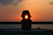 岬にある夕日のシンボルには、「シンボル中央の穴を夕日が通り過ぎるように見える春分の日と秋分の日に二人で祈ると幸せになれる」というジンクスがあるんだって。