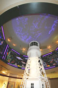 入館するとすぐに、2階吹き抜けを貫いて明治23年(1890)11月1日に初点灯した初代恵山岬灯台の4分の1の大きさのレプリカがあって、ものすごい迫力!レプリカが置かれている台のハンドルを回してみると、灯台頂部のレンズに灯がともり、そのすぐ上の丸天井には灯台建設当時の航海者が夜の航海の道しるべに活用した星座絵が現れるんだ!アイは、幻想的な雰囲気の空間を眺めながらうっとりとロマンチックな気分になっちゃいました。