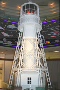2階には、日本と、デンマーク、スペイン、フランスなどをはじめ世界各国の灯台の歴史や灯台に関わる歌、文学、絵画などがパネル展示され、実物の灯台レンズも並べられていて興味深いよ。灯台のルーツ=世界一古い灯台は、世界7不思議のひとつでもある、紀元前279年に、アレキサンドリアにあったファロス島の東端に建てられた「ファロス灯台」。その高さは60mとも100mともいわれ、100km先からも光が見えたという巨大な建物だったそうだよ。