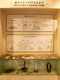 1階では他にも近江戦国の道に位置する19市町の文化資源をパネルで紹介している「歴史回廊」や、和ろうそくや洋ろうそくの製造工程や歴史がわかるパネル展示コーナー。さらに、享保17年(1732)徳川吉宗の時代の彦根藩士、平石久平次時光が完成したとされる世界で最初に発明されたペダル・クランク機構の舟形三輪自転車の陸舟奔車(りくしゅうほんしゃ)の復元車の展示。残念ながらアイは時間がなくて体験できなかったけど、1階奥に併設されている「キャンドル・夢工房」では、自分だけのオリジナルキャンドルを作ることができるの。世界でたったひとつしかないキャンドル、アイも作りたかったなぁ(涙)。「職人の家」では、毎週日曜日に職人さんによる伝統の技「和ろうそく作り」の実演が見られるよ。