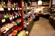 夢京橋あかり館に入るとすぐに、伝統職人による和ろうそくから西洋のアロマキャンドルまで様々なろうそくを取りそろえ、オリジナルキャンドルやクラフトマンの手による燭台や行燈など約1000種類のあかりグッズを展示販売しているショッピングコーナーがあります。ろうそくって、絵柄が付いてたりカラフルなものもあってほんとに可愛いものや美しいものがたくさん!手描きで美しい花が描かれた和ろうそくは手づくりならではのぬくもりを感じます。