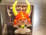 アイの夢京橋あかり館イチオシのグッズは「ひこにゃん」のキャンドル!ひこにゃんキャンドルは高さ9.5cm、幅6cmの手の平サイズで、点火後は、2時間から3時間燃焼するの。館員さんが、赤やオレンジなど5色の顔料を使い、一体ずつ筆で彩色して仕上げているから、目やひげに微妙な表情の違いがあるんだって。すべてが世界にひとつしかない貴重なものなんだね。築城400年祭終了まで販売しているから、是非レアなお宝としてゲットしてね。お値段は1個630円だよ。