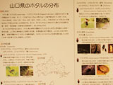 「ホタル百科」では、日本に分布しているホタル類を紹介するコーナーや世界のホタルを紹介するコーナー、ゲンジボタル、ヘイケボタル、ヒメボタルの光り方をクイズ形式のタッチパネルで紹介するコーナー、ホタル以外の光る生き物を映像で紹介するコーナーなどがあったよ。ホタルの発光の間隔は糸魚川線のフォッサ・マグナを境界領域として、西日本は2秒間隔、東日本は4秒間隔で明滅するそうです。サイクルの違いが関係あるのかよくわからないけど、本当にホタルって不思議な生物だね。ほかにもホタルは体内の光を邪魔する物質を持っていて、それをコントロールして光の明滅や強さを調節をしているんだって!